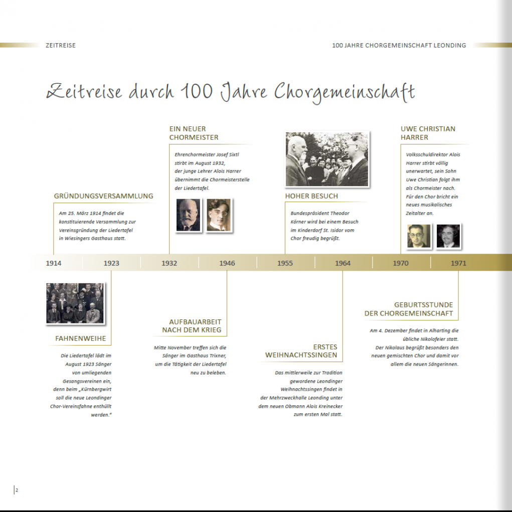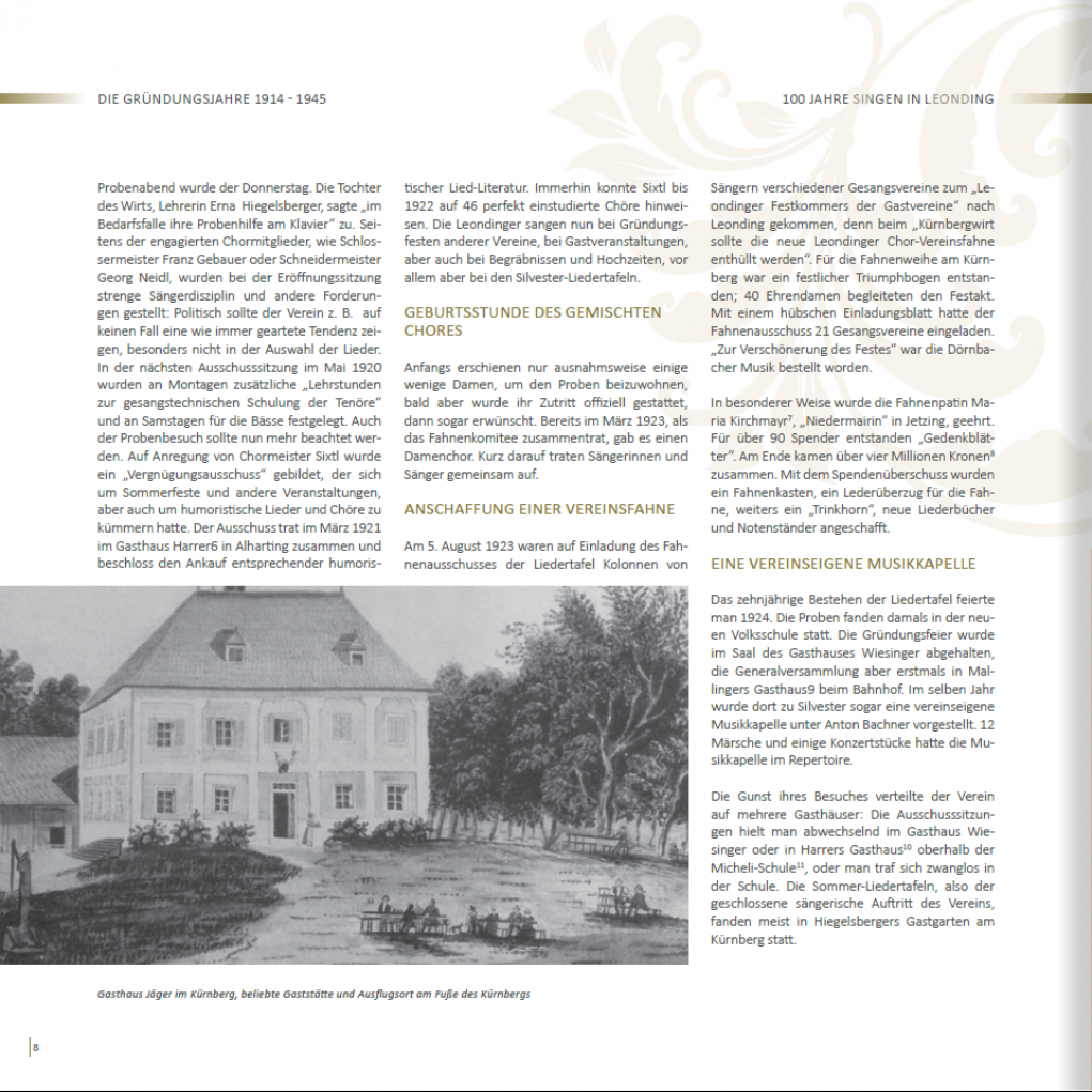 100 Jahre gemeinsam musizieren bietet unheimlich viel Stoff für eine Chronik. Interessante Geschichten der Gründung, die schwierigen Zeiten rund um die beiden Kriege, sowie das Emporsteigen der Chorgemeinschaft auf ein musikalischen Topniveau wird in vielen netten, unterhaltsamen und reich bebilderten Geschichten dargestellt. Durch akribisch genaue Aufzeichnungen der Chronisten sowie die lückenlose Aufarbeitung der Redakteure wurde ein großartiges Lesevergnügen für Jung und Alt geschaffen.