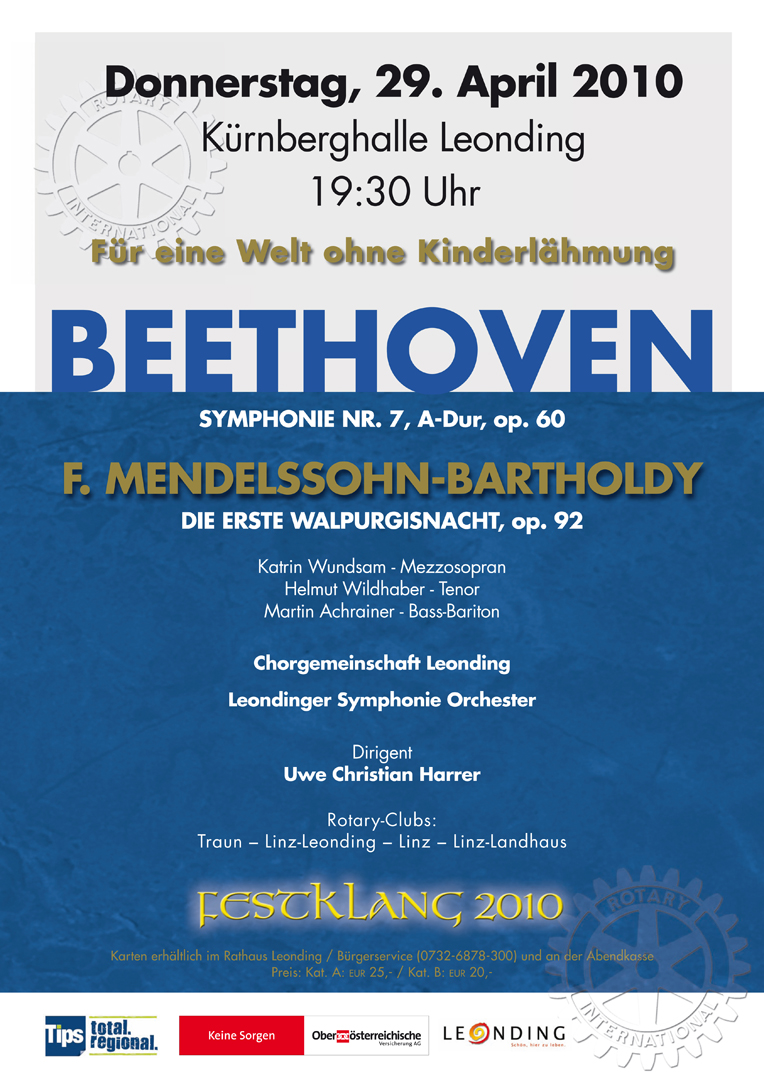 Das Konzert war eine Benefizveranstaltung der vier Rotary-Clubs Linz, Linz-Landhaus, Linz-Leonding und Traun zur Unterstützung des Projektes Polioplus für eine Welt ohne Kinderlähmung.
