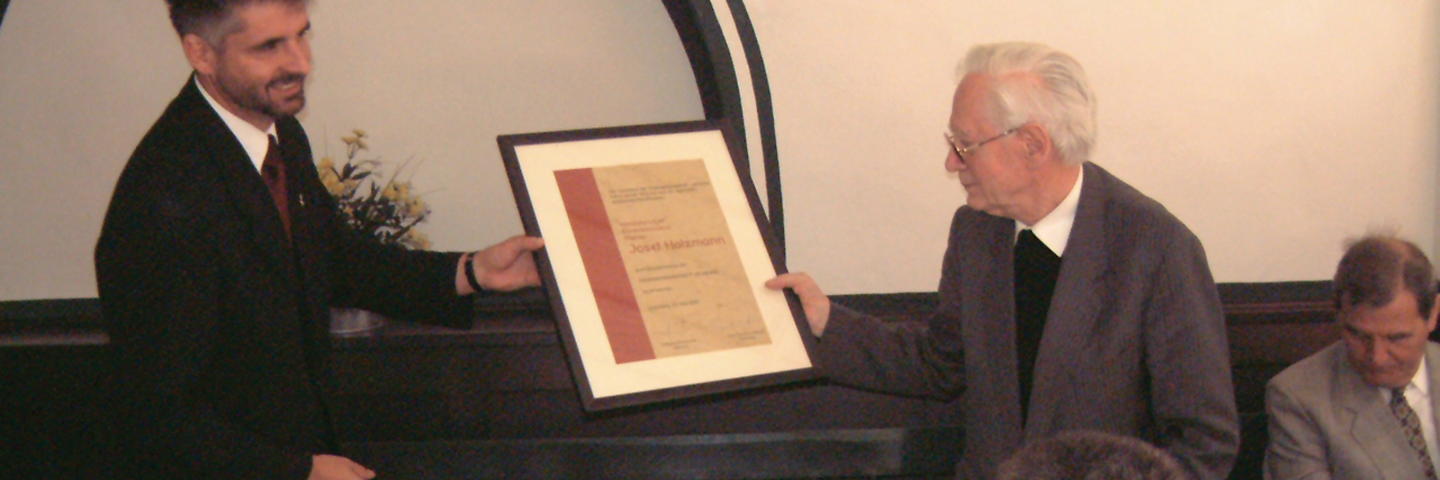 Josef Holzmann, geboren am 17. Mai 1920 in Schwertberg, Oberösterreich, begann im November 1939 das Studium der Theologie. In den Kriegsjahren war er von 1940 bis 1945 bei der Luftwaffe als Flugzeugführer und Fluglehrer im Einsatz. Nach einer kurzen Gefangenschaft setzte er das Theologiestudium fort und wurde 1947 zum Priester geweiht. Ab 1953 war er Seelsorger in der VÖEST, mit der er zeitlebens verbunden blieb. Von 1963 bis 1997 war er Pfarrer in Leonding-St. Michael. Pfarrer Josef Holzmann wurde 1990 Ehrenbürger der Stadt Leonding. Josef Holzmann ist am 4. September 2002 in Wilhering verstorben.