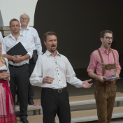 Mario Hartl bot zwei Solostücke („So wilde Freude“ von Boris Blacher und das „Hobellied“ von Conradin Kreutzer) und übernahm das Solo im Chor „To be or not to be“ von Leo Mathisen.