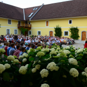 An einem schönen, warmen Sommerabend fand die Sommerserenade diesmal im stimmungsvollen Ambiente des Schlosses Rufling statt. Der ehemalige Direktor der Musikvolksschule Leonding Luis Wagenhofer hatte den Hofbereich vor seinem Schloss zur Verfügung gestellt.